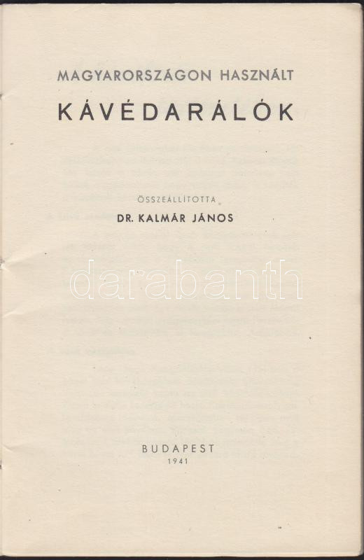 1941 Dr. Kalmár János: Magyarországon használt kávédarálók. képekkel https://www.darabanth.com/de/150-Fernauktion/150.0/Andere-Sammelgebiete/Drucksachen~50/1941-Dr-Kalmar-Janos-Magyarorszagon-hasznalt-kavedaralok-kepekkel~II458249