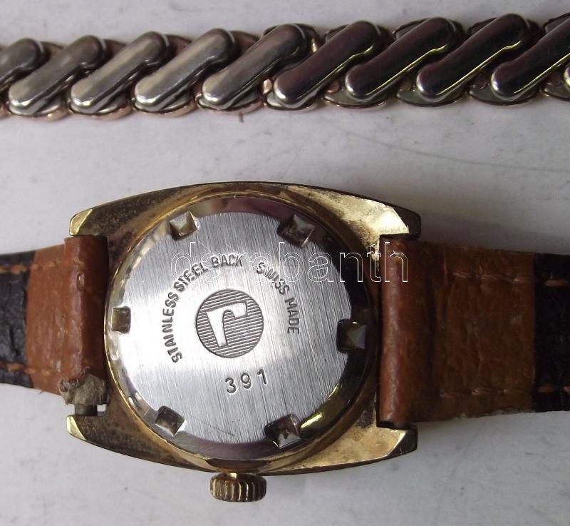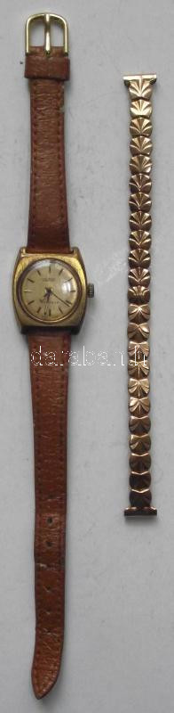 Beschreibung: 1db működőképes Roamer márkájú női mechanikus karóra jó állapotban és egy aranyozott fém óraszíj