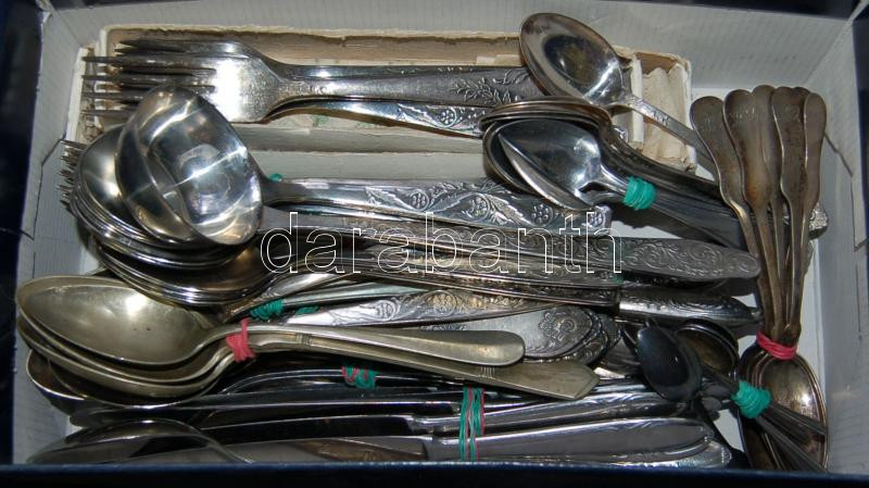 Beschreibung: kb. 100 darabos klf evőeszközkészlet: merőkanál, kanál, kés, villa, kávés- és teás kanál