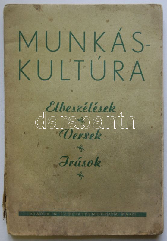 Munkáskultúra - elbeszélések, versek, írások, kiadja a Szociáldemokrat... https://www.darabanth.com/de/151-Fernauktion/151.0/Andere-Sammelgebiete/Bucher-Architektur-Kunst~500023/Munkaskultura--elbeszelesek-versek-irasok-kiadja-a-Szocialdemokrata-Part-kiadoi-papir~II461099