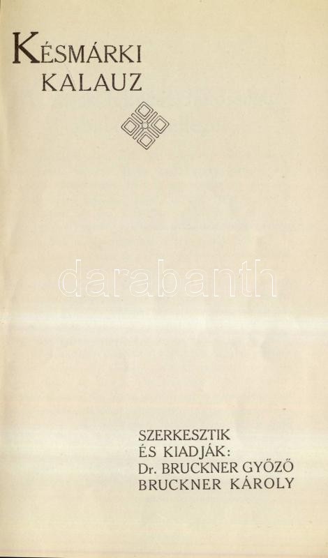 Késmárki kalauz. Szerk. és kiad. Dr. Bruckner Győző és Bruckner Károly... https://www.darabanth.com/de/151-Fernauktion/151.0/Andere-Sammelgebiete/Bucher-Reisen-Stadte~500019/Kesmarki-kalauz-Szerk-es-kiad-Dr-Bruckner-Gyozo-es-Bruckner-Karoly-Kesmark-1912-Sok-~II466136