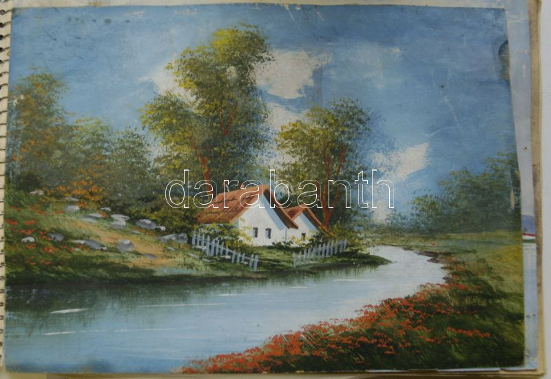 Beschreibung: 2 db jelzés nélküli akvarell + vázlatfüzet 5 db szénrajzzal