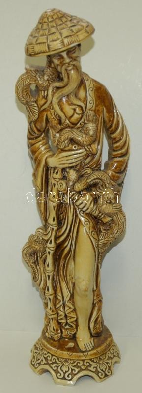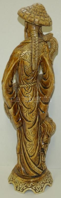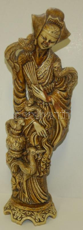 Beschreibung: 2db japán ősi motívumú szobor gipszből, kisebb sérülésekkel 37cm magasak