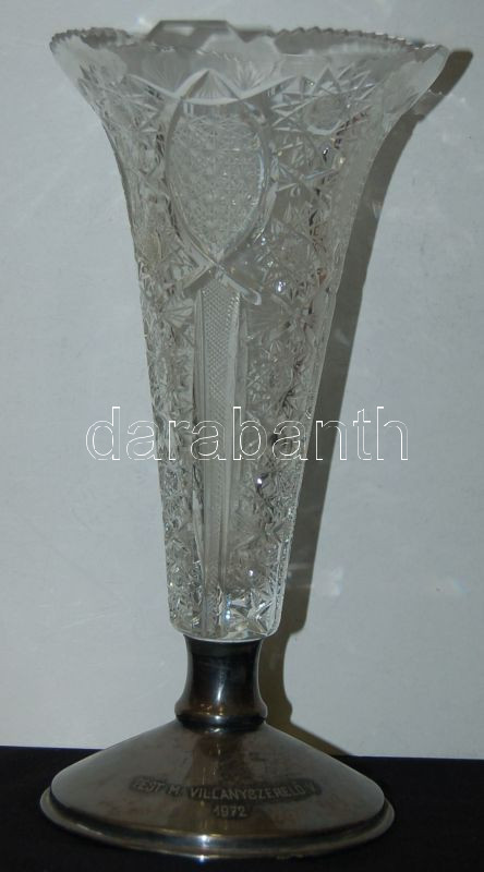 Beschreibung: Dekoratív nagyméretű kristály váza ezüstözött talppal 26cm magas