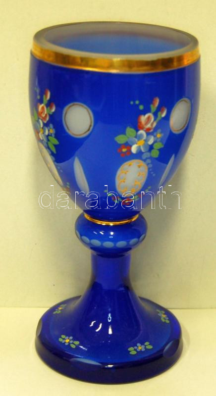 Beschreibung: Kézzel festett és aranyozott csiszolt üvegkupa 20cm magas