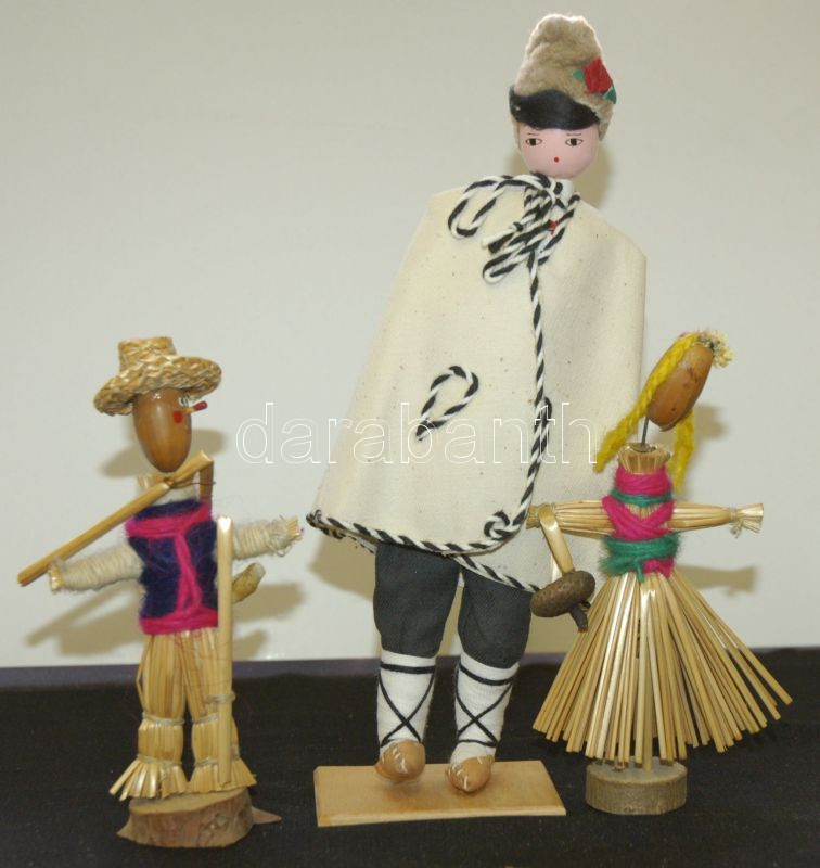 Beschreibung: Mongol népviseletes baba 27cm magas és 2 db lengyel szalmabábú