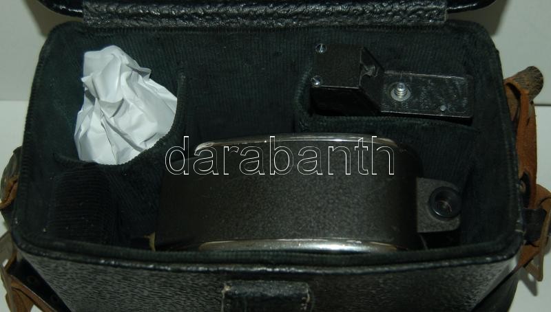 Beschreibung: Quarz-2M típusú 8mm-es mechanikus kamera keményfalú bőrtokban