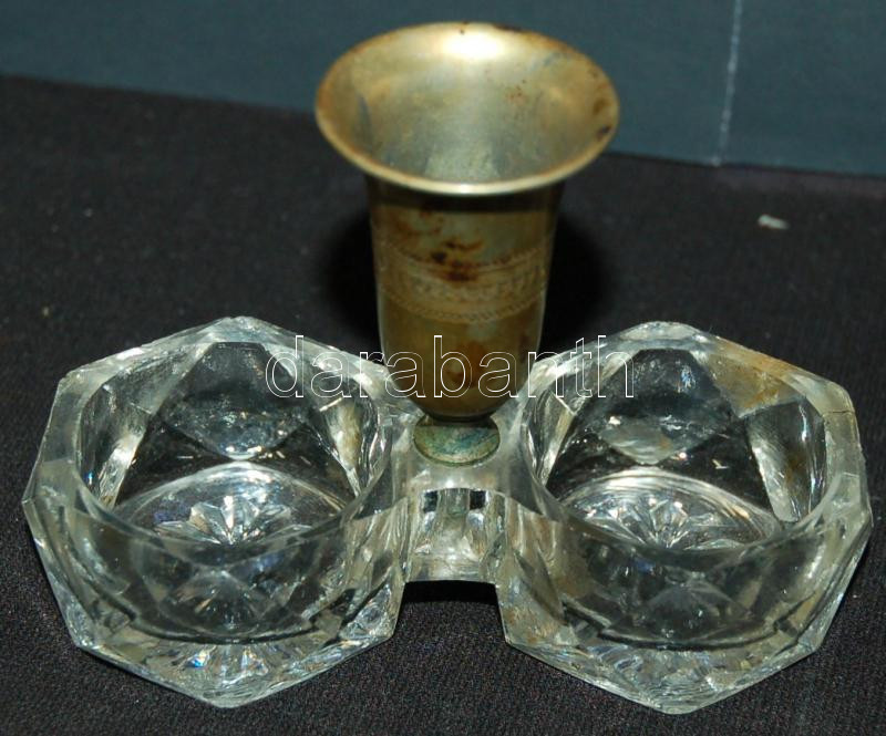 Beschreibung: Régi réz-üveg fogpiszkáló és fűszertartó 12x8cm