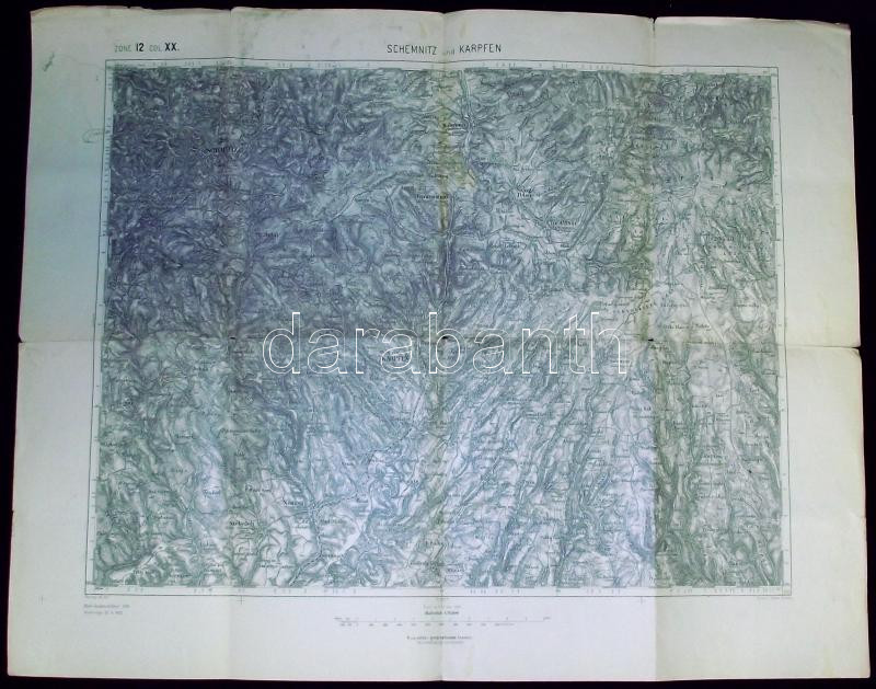 Beschreibung: cca 1916 Korpona és Körmöcbánya környékének katonai térképe / WW. I. military map of Cremnitz and Karpfen (kis szakadásokkal) 60x50 cm