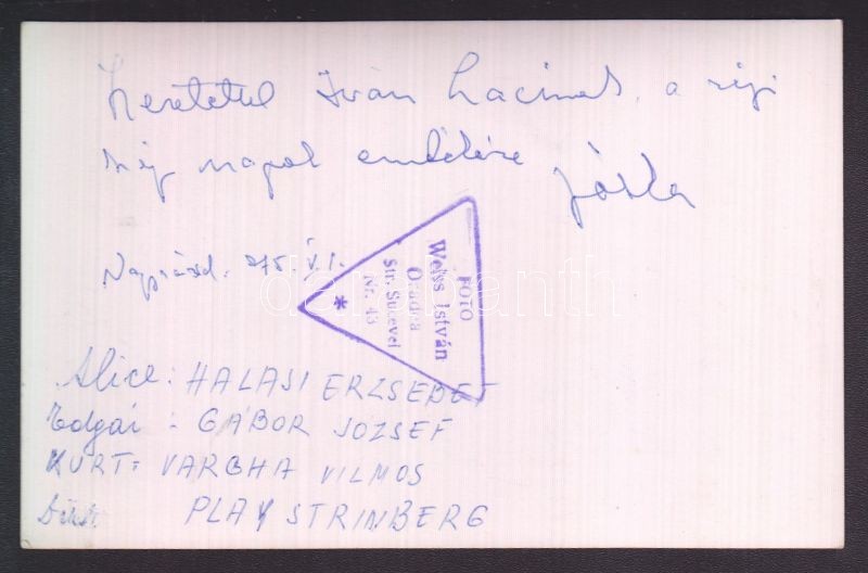 Beschreibung: 1943 Reményi-Schneller Lajos pénzügyminiszter aláírása kinevezésen + Gábor József által dedikált színházi fotó