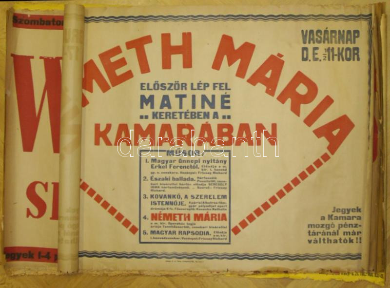 1926-1930 11db színházi, hangversenyes plakát: Németh Mária, Wakots M... https://www.darabanth.com/de/151-Fernauktion/151.0/Andere-Sammelgebiete/Werbungen~500009/1926-1930-11db-szinhazi-hangversenyes-plakat-Nemeth-Maria-Wakots-Margit-Seregely-Anna-Ze~II464750