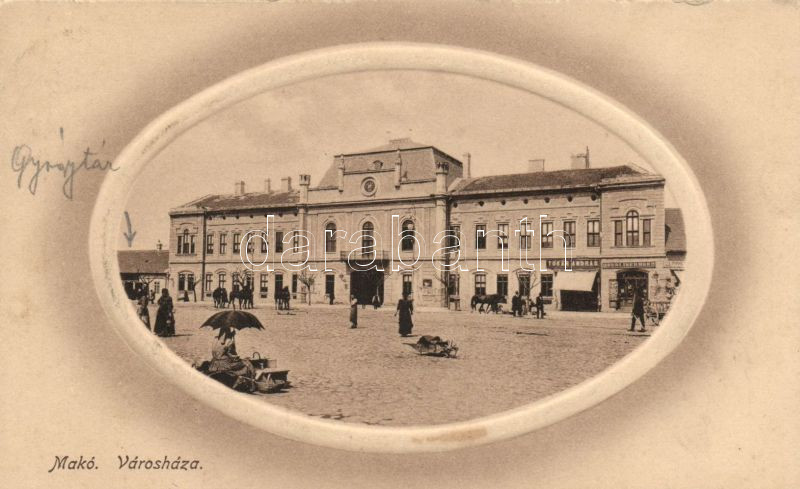 Makó városháza Tokar András és Berliner Mór kereskedéseivel https://www.darabanth.com/de/151-Fernauktion/151.0/Ansichtskarten/Ungarn~500034/Mako-varoshaza-Tokar-Andras-es-Berliner-Mor-kereskedeseivel~II464534