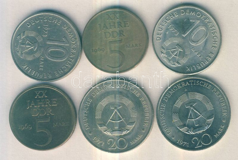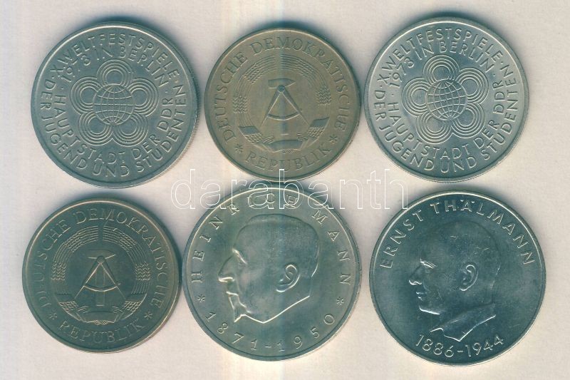NDK 1969-1973. 5M (2x), 10M (2x), 20M (2x)"Ernst Thälman" + "Heinrich ... https://www.darabanth.com/de/151-Fernauktion/151.0/Numismatik/Auslandische-Munzen~500156/NDK-1969-1973-5M-2x-10M-2x-20M-2xErnst-Thalman-plus-Heinrich-Mann-T2-2plus---GDR-1969-1973~II453765