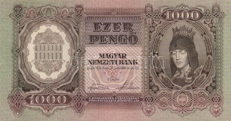 1943. 1000P (2x) eltérő színváltozatok T:I https://www.darabanth.com/de/151-Fernauktion/151.0/Numismatik/Ungarische-Banknoten~500151/1943-1000P-2x-eltero-szinvaltozatok-TI~II460381