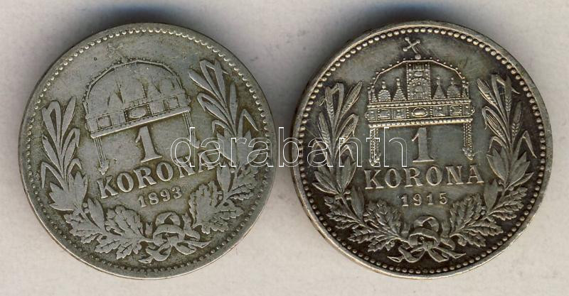 1893. 1K Ag + 1915. 1K Ag T:3,2+ https://www.darabanth.com/de/151-Fernauktion/151.0/Numismatik/Ungarische-Munzen~500152/1893-1K-Ag-plus-1915-1K-Ag-T3-2plus~II462169
