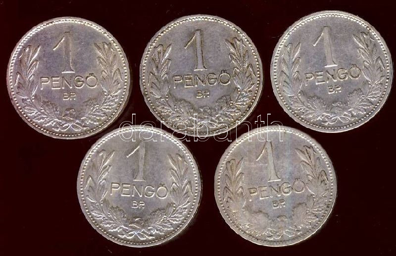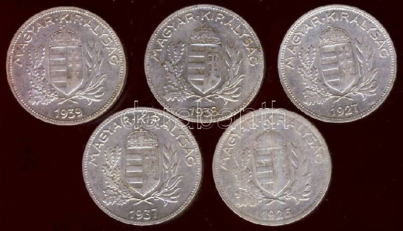 1926-1939. 1P Ag (5x) mind klf évszámmal T:2,2-,3 https://www.darabanth.com/de/151-Fernauktion/151.0/Numismatik/Ungarische-Munzen~500152/1926-1939-1P-Ag-5x-mind-klf-evszammal-T2-2-3~II461428