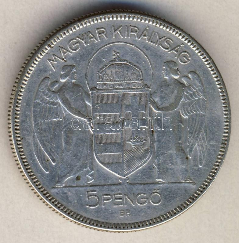 1930. 5P Ag "Horthy jobbra" T:2/3 https://www.darabanth.com/de/151-Fernauktion/151.0/Numismatik/Ungarische-Munzen~500152/1930-5P-Ag-Horthy-jobbra-T23~II464956