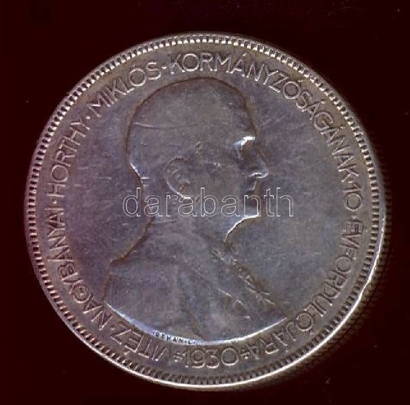 1930. 5P Ag "Horthy jobbra" T:3 ph. https://www.darabanth.com/de/151-Fernauktion/151.0/Numismatik/Ungarische-Munzen~500152/1930-5P-Ag-Horthy-jobbra-T3-ph~II461538
