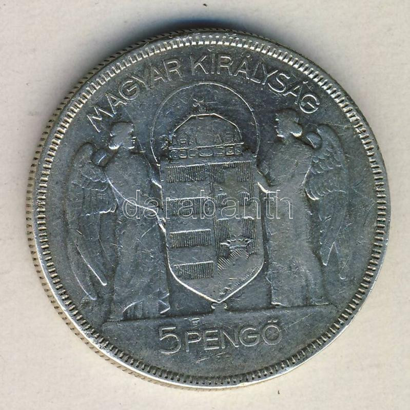 1930. 5P Ag "Horthy jobbra" T:3 ph. https://www.darabanth.com/de/151-Fernauktion/151.0/Numismatik/Ungarische-Munzen~500152/1930-5P-Ag-Horthy-jobbra-T3-ph~II461713