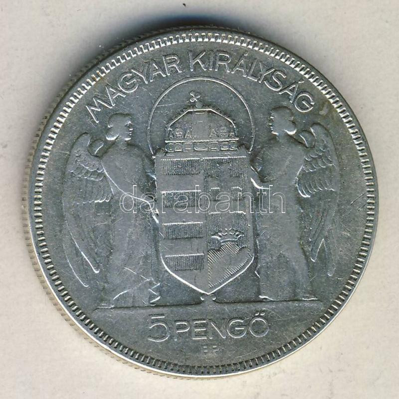 1930. 5P Ag "Horthy jobbra" T:3 ph. https://www.darabanth.com/de/151-Fernauktion/151.0/Numismatik/Ungarische-Munzen~500152/1930-5P-Ag-Horthy-jobbra-T3-ph~II461715