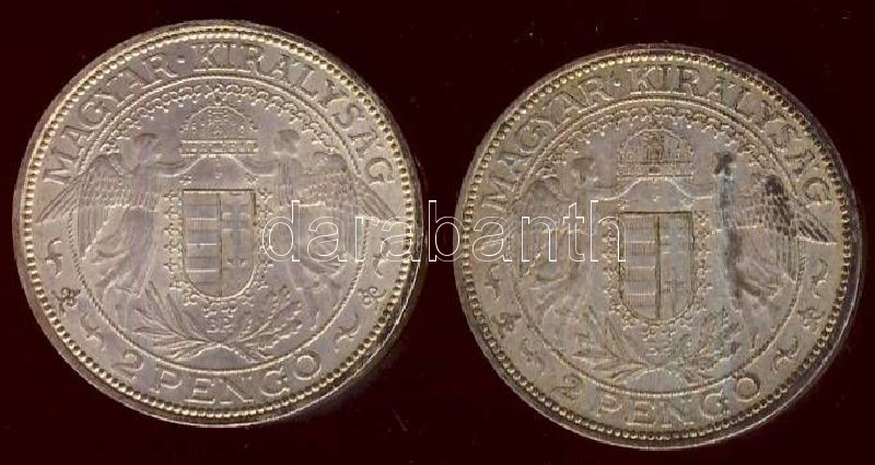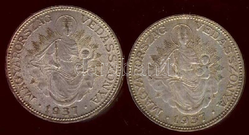 1937. 2P Ag "Madonna" (2x) T:2-,3 https://www.darabanth.com/de/151-Fernauktion/151.0/Numismatik/Ungarische-Munzen~500152/1937-2P-Ag-Madonna-2x-T2-3~II460505