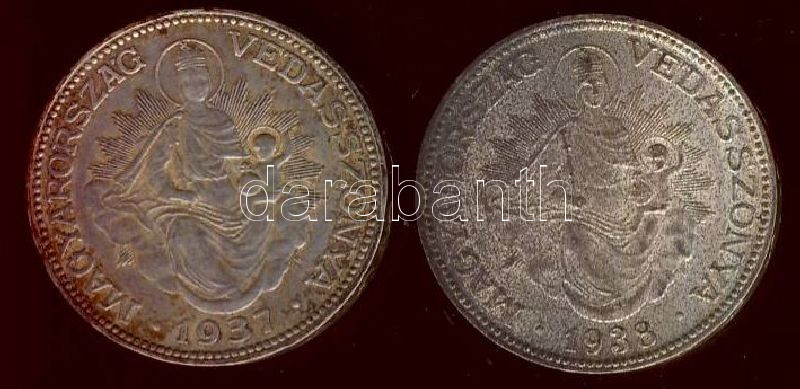 1937-38. 2P Ag "Madonna" (2x) T:3 https://www.darabanth.com/de/151-Fernauktion/151.0/Numismatik/Ungarische-Munzen~500152/1937-38-2P-Ag-Madonna-2x-T3~II460514