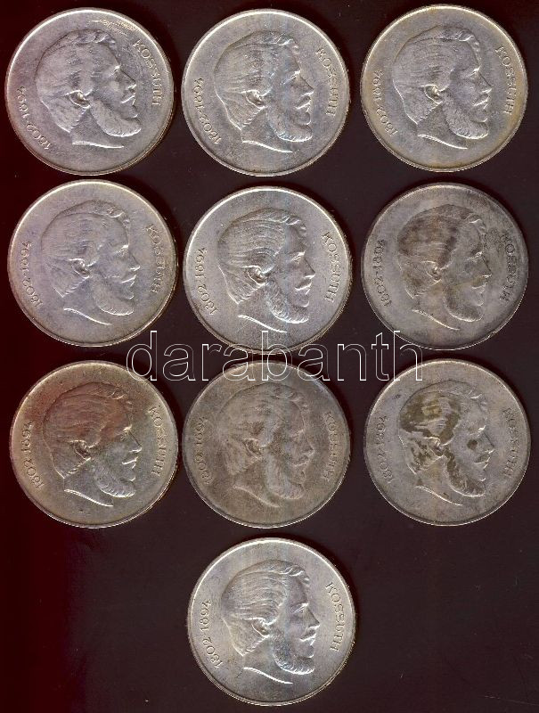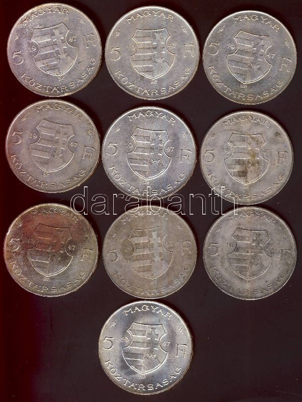 1947. 5Ft Ag "Kossuth" (10x) T:vegyes https://www.darabanth.com/de/151-Fernauktion/151.0/Numismatik/Ungarische-Munzen~500152/1947-5Ft-Ag-Kossuth-10x-Tvegyes~II465103