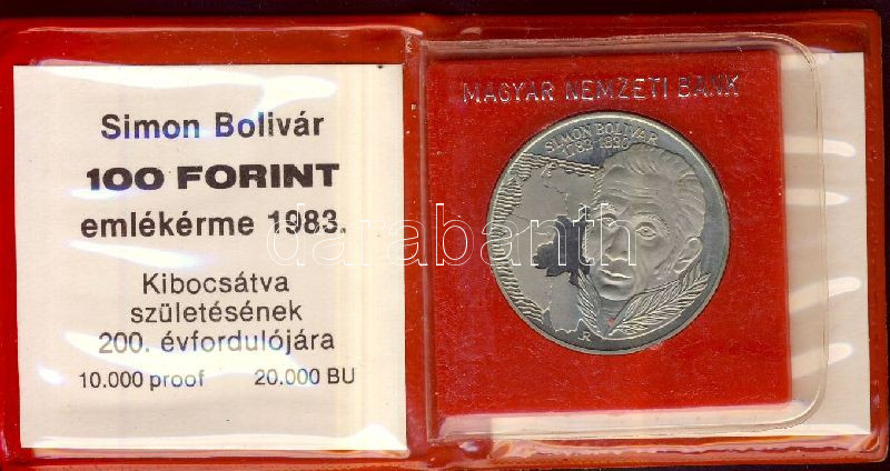 Beschreibung: 1983. 100Ft "Simon Bolivár" T:BU Eredeti tokban, tanúsítvánnyal!