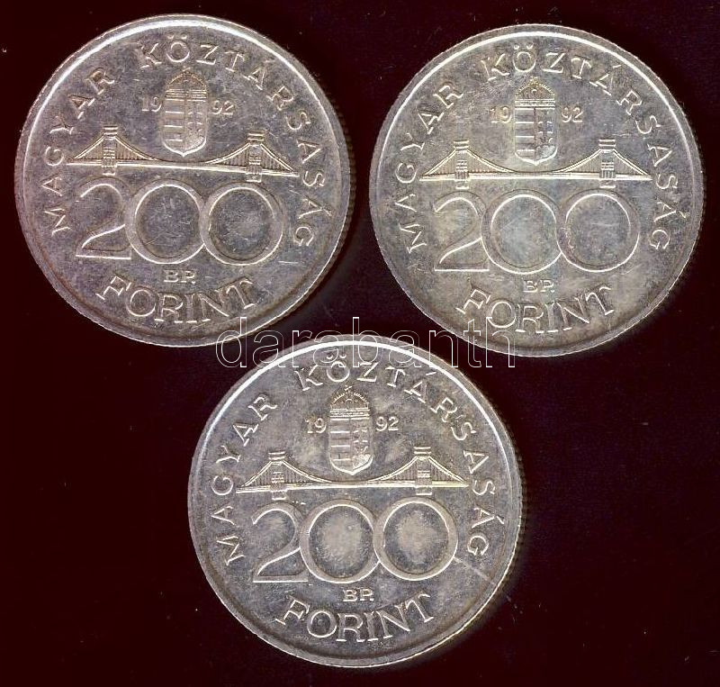 1992. 200Ft Ag "MNB" (3x) T:2 https://www.darabanth.com/de/151-Fernauktion/151.0/Numismatik/Ungarische-Munzen~500152/1992-200Ft-Ag-MNB-3x-T2~II465085