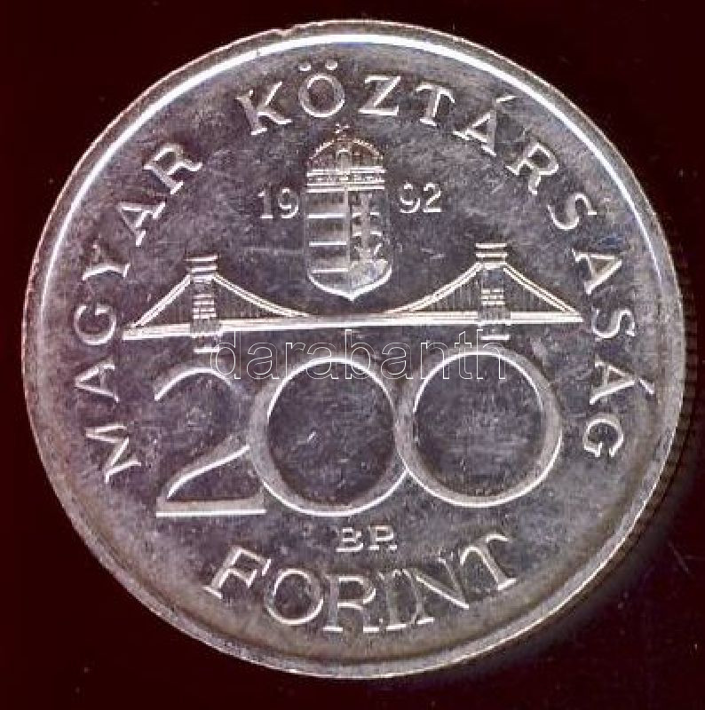 1992. 200Ft Ag "MNB" T:1- https://www.darabanth.com/de/151-Fernauktion/151.0/Numismatik/Ungarische-Munzen~500152/1992-200Ft-Ag-MNB-T1-~II461699
