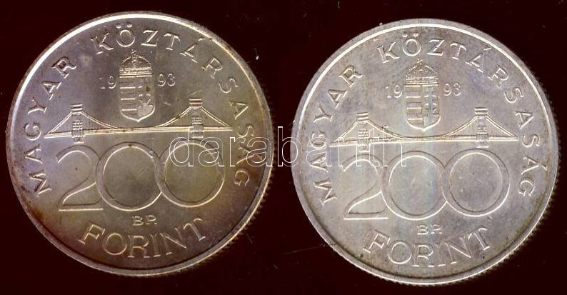 Beschreibung: 1993. 200Ft Ag "MNB" (2x) T:2,2-