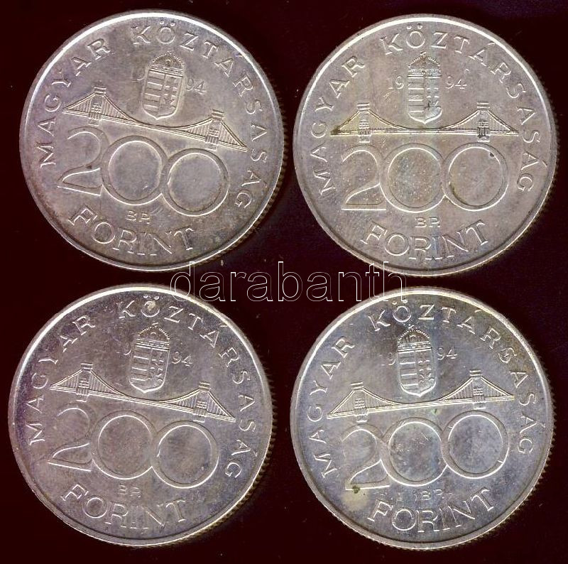 1994. 200Ft Ag "Deák" (4x) T:2 https://www.darabanth.com/de/151-Fernauktion/151.0/Numismatik/Ungarische-Munzen~500152/1994-200Ft-Ag-Deak-4x-T2~II461818