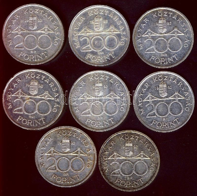 1994. 200Ft Ag "MNB" (8x) T:2+,2 https://www.darabanth.com/de/151-Fernauktion/151.0/Numismatik/Ungarische-Munzen~500152/1994-200Ft-Ag-MNB-8x-T2plus-2~II461819