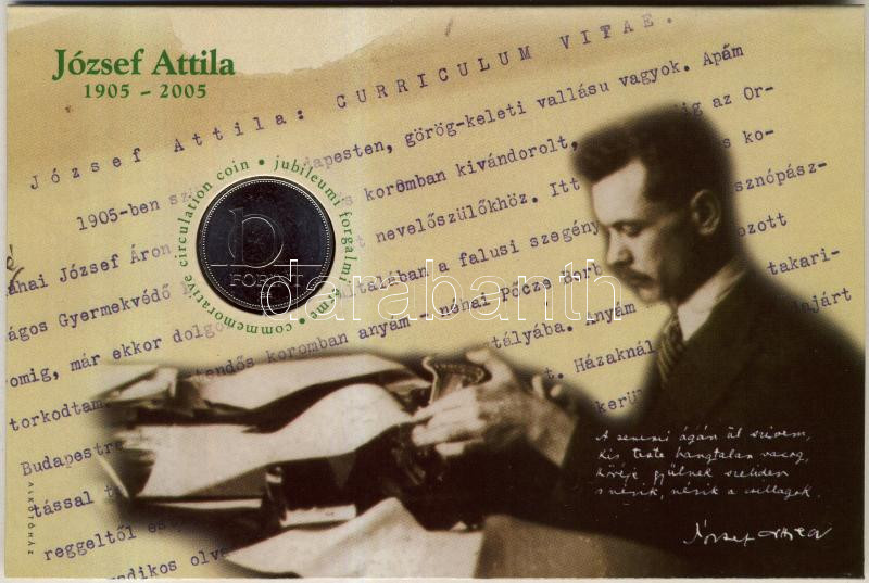 2005. 10Ft "József Attila" számozott emléklapon T:1 Csak 12000db! https://www.darabanth.com/de/151-Fernauktion/151.0/Numismatik/Ungarische-Munzen~500152/2005-10Ft-Jozsef-Attila-szamozott-emleklapon-T1-Csak-12000db~II462782