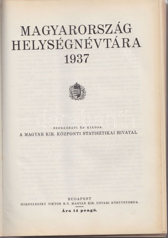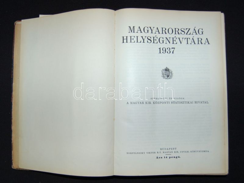1937 Magyarország helységnévtára, sérült aranyozott egészvászon kötésb... https://www.darabanth.com/de/152-Fernauktion/152.0/Andere-Sammelgebiete/Bucher-Sonstige-Raritaten~246/1937-Magyarorszag-helysegnevtara-serult-aranyozott-egeszvaszon-kotesben-gerinc-hianyzik~II431609