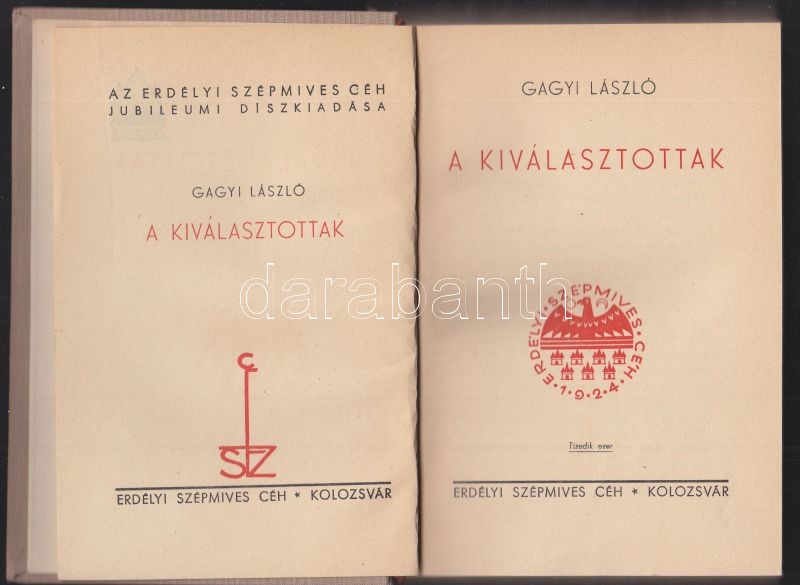 Gagyi László: A kiválasztottak, Erdélyi Szépmíves Céh Kiadó, Kolozsvár... https://www.darabanth.com/de/152-Fernauktion/152.0/Andere-Sammelgebiete/Bucher-Sonstige-Raritaten~246/Gagyi-Laszlo-A-kivalasztottak-Erdelyi-Szepmives-Ceh-Kiado-Kolozsvar--A-kiado-10-eves-~II434907