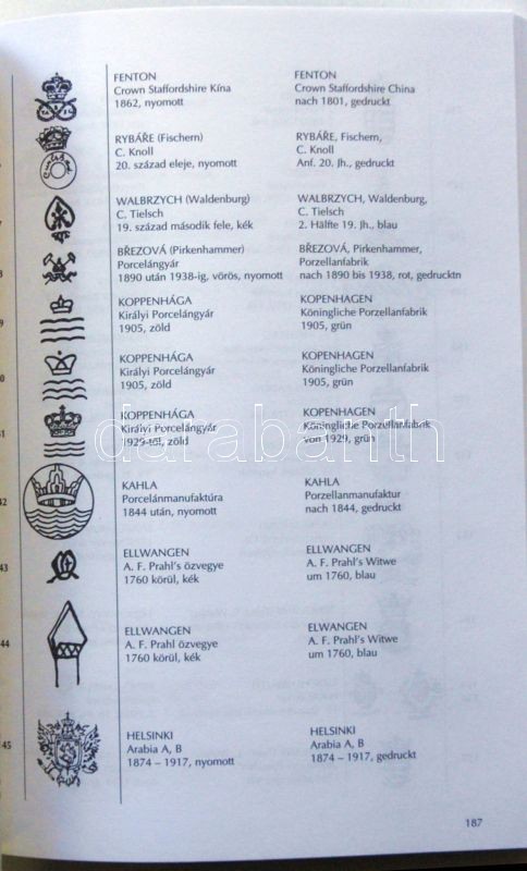 KIss László: Ezüst és porcelánjelzések. Magyar és német nyelvű katalóg... https://www.darabanth.com/de/152-Fernauktion/152.0/Andere-Sammelgebiete/Bucher-Sonstige-Raritaten~246/KIss-Laszlo-Ezust-es-porcelanjelzesek-Magyar-es-nemet-nyelvu-katalogus-China-and-silv~II470872