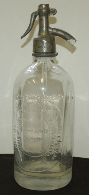 Beschreibung: "A Diósgyőri M. Kir. Vas és acélgyár alkalmazottai fogyasztási szövetkezete - El nem adható tulajdon" szódásüveg 29cm magas