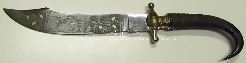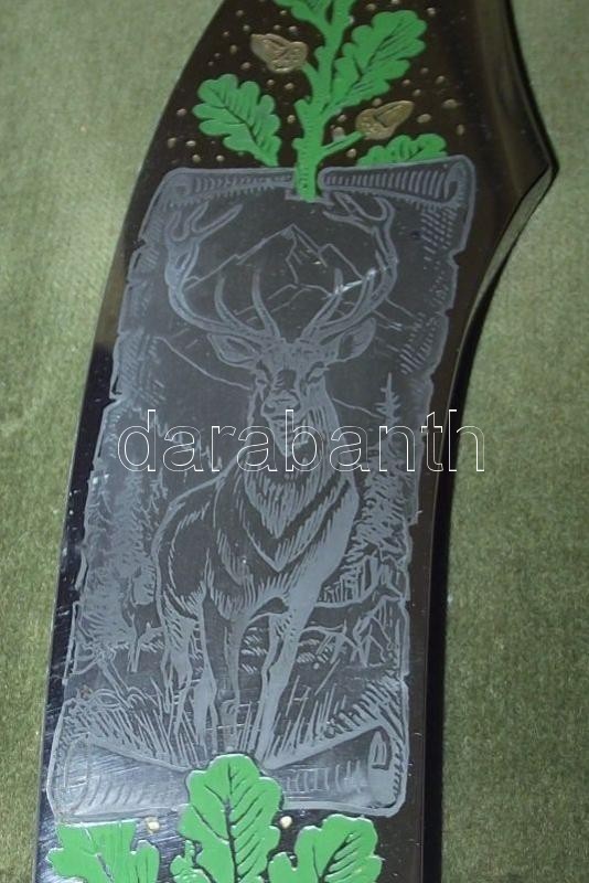 Coltellerie Lepre márkájú igényes olasz vadásztőr zerge-karom nyéllel, díszdobozban / Exclusive Coltellerie Lepre hunting knife with stag-horn handle in case 38 cm