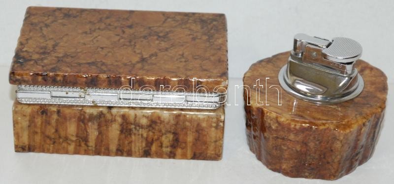 Beschreibung: Igényes csiszolt márvány cigaretta-kínáló készlet : hamutál, öngyújtó, cigarettatartó / Exclusive smoker table kit