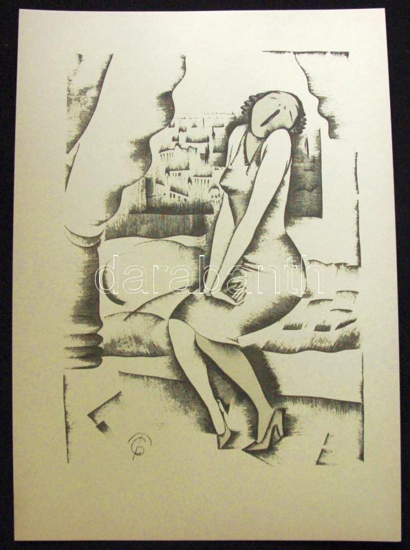 Beschreibung: Molnár C Pál (1894-1981): Ébredés, kis szériás ofszet-karton, 21x29 cm