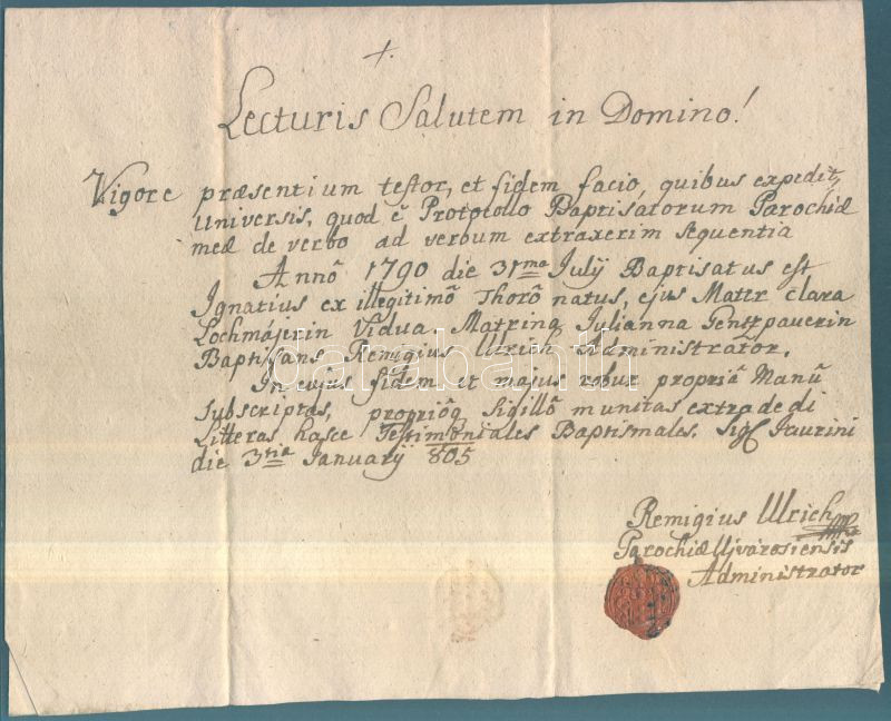 1805 Keresztlési anyakönyvi kivonat Remigius Ulrisc Ujvárosi plébános ... https://www.darabanth.com/de/152-Fernauktion/152.0/Andere-Sammelgebiete/Signatur~226/1805-Keresztlesi-anyakonyvi-kivonat-Remigius-Ulrisc-Ujvarosi-plebanos-alairasaval~II406628