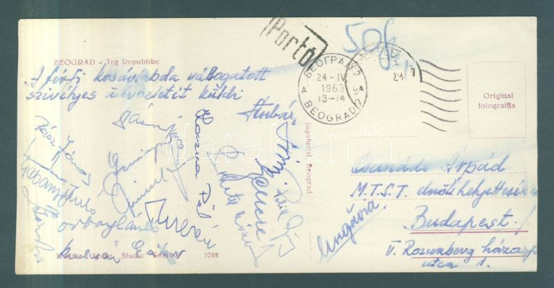 1963 Az EB aranyérmes kosárlabda-válogatott játékosai és edzői által a... https://www.darabanth.com/de/152-Fernauktion/152.0/Andere-Sammelgebiete/Signatur~226/1963-Az-EB-aranyermes-kosarlabda-valogatott-jatekosai-es-edzoi-altal-alairt-kepeslap-Csan~II456869