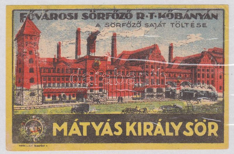 Fővárosi Sörfőző Rt.: Mátyás Király Sör - sörcímke https://www.darabanth.com/de/152-Fernauktion/152.0/Andere-Sammelgebiete/Werbungen~229/Fovarosi-Sorfozo-Rt-Matyas-Kiraly-Sor--sorcimke~II470785