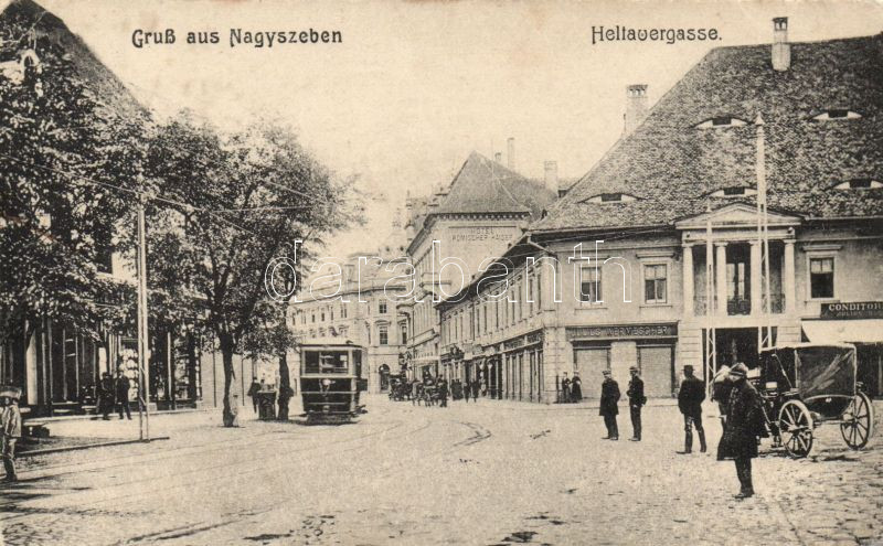 Nagyszeben Heltau street with Hotel Römischer Kaiser and the shop of J... https://www.darabanth.com/de/152-Fernauktion/152.0/Ansichtskarten/Siebenburgen~500006/Nagyszeben-Heltau-street-with-Hotel-Romischer-Kaiser-and-the-shop-of-Julius-Wermescher~II470631