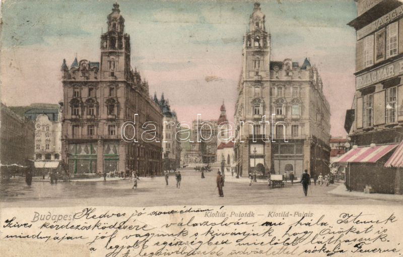 Beschreibung: Budapest V. Klotild paloták az épülő Erzsébet híddal (b)