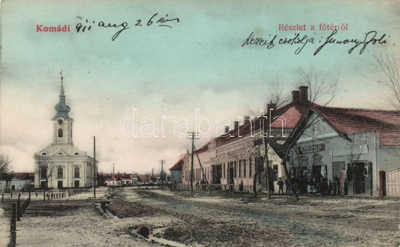 Beschreibung: Komádi főtér Kohn Amália üzletével (EK)