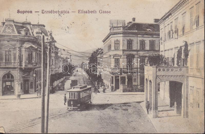 Sopron Erzsébet utca villamossal (fl) https://www.darabanth.com/de/152-Fernauktion/152.0/Ansichtskarten/Ungarn~500005/Sopron-Erzsebet-utca-villamossal-fl~II469011