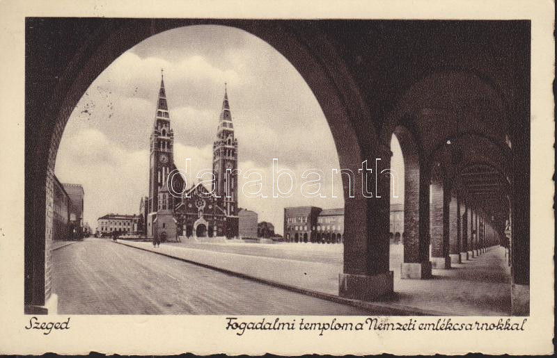 Szeged Fogadalmi templom a Nemzeti emlékcsarnokkal https://www.darabanth.com/de/152-Fernauktion/152.0/Ansichtskarten/Ungarn~500005/Szeged-Fogadalmi-templom-a-Nemzeti-emlekcsarnokkal~II469067