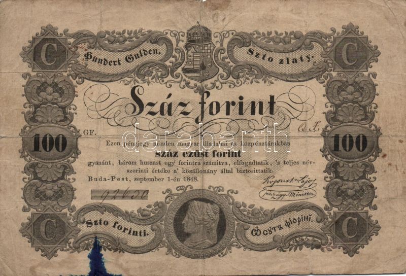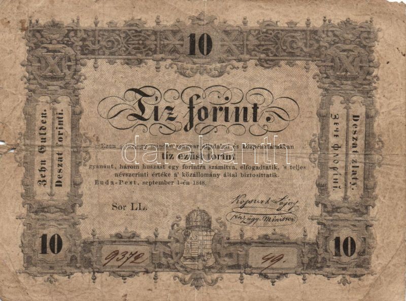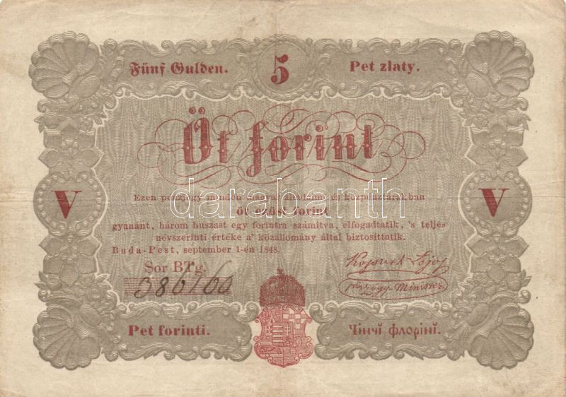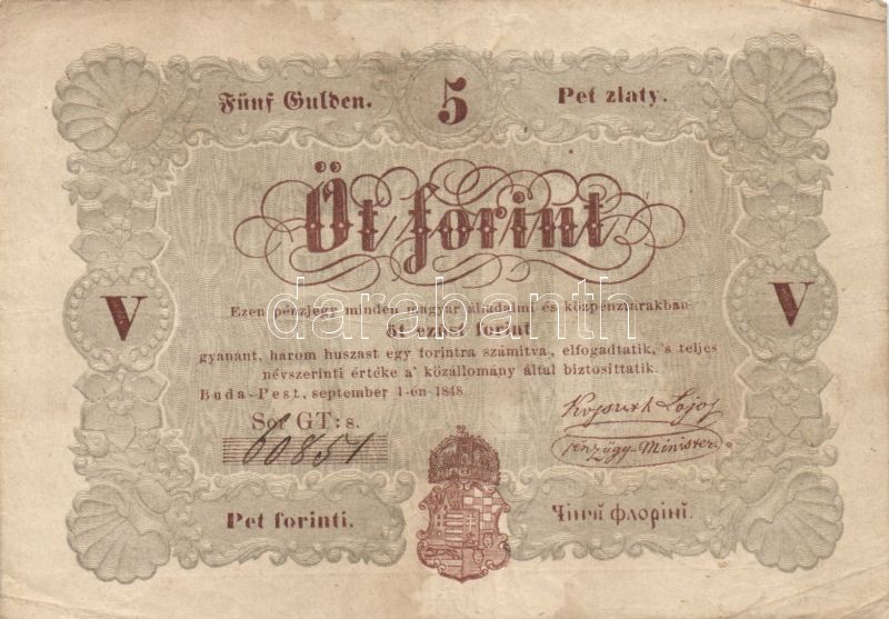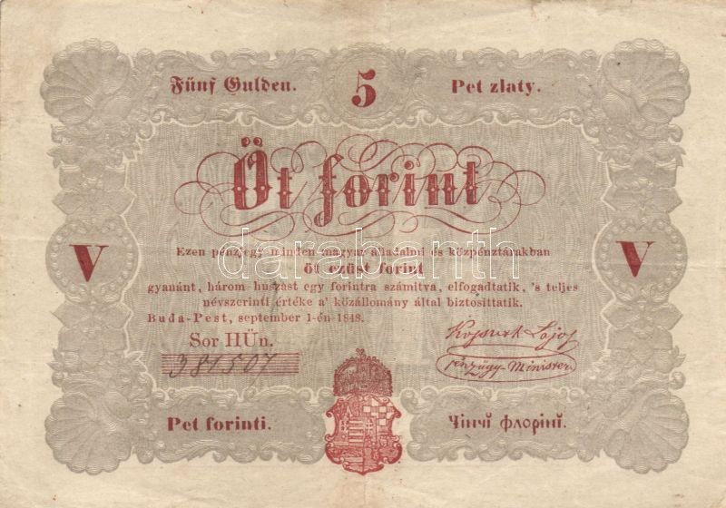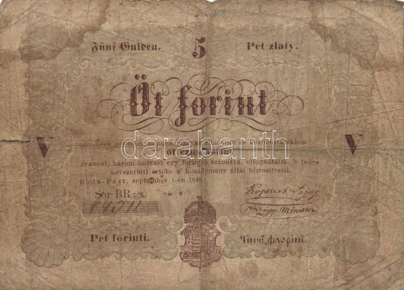 Kossuth-bankó tétel 1848. 5Ft (4x) piros és barna változat + 10Ft + 10... https://www.darabanth.com/de/152-Fernauktion/152.0/Numismatik/Ungarische-Banknoten~700010/Kossuth-banko-tetel-1848-5Ft-4x-piros-es-barna-valtozat-plus-10Ft-plus-100Ft-TII-III-IV~II469168